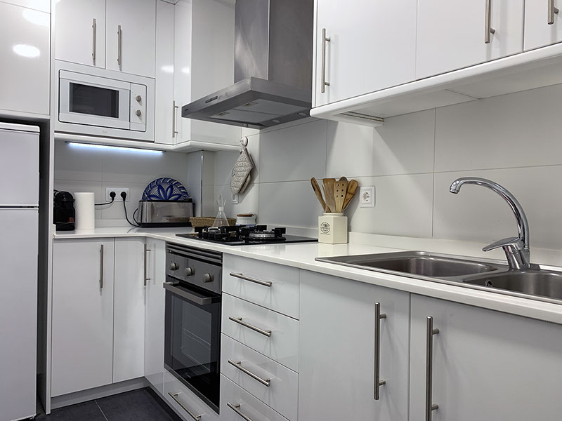 Apartament de 2 habitacions, cuina, menjador, bany i terrassa amb vista lateral a la platja del Regueral. Completament reformat, equipat amb rentadora, TV i rentaplats. HUTT 010697